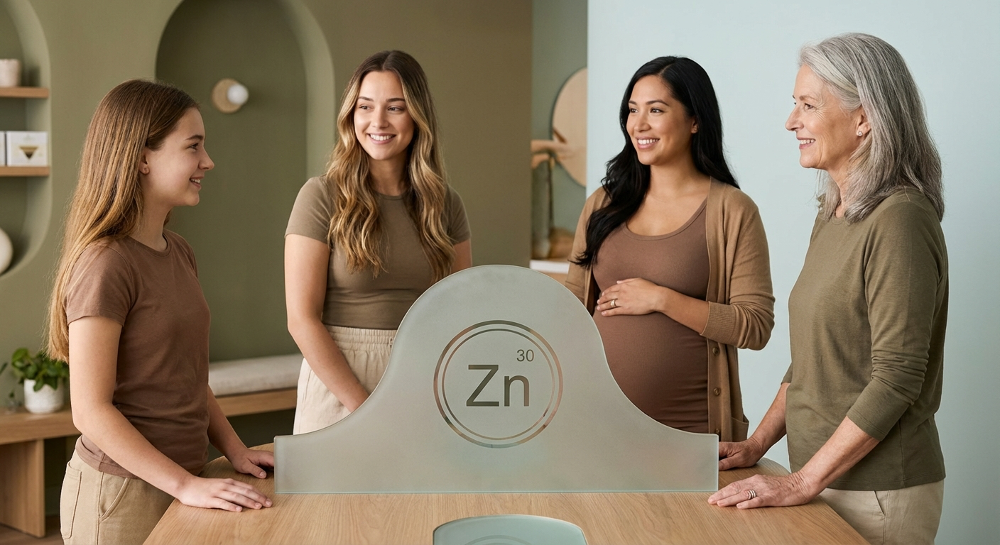 For women, understanding zinc is particularly important because needs shift across life stages, from the teen years through pregnancy and menopause. Marginal insufficiency is common, even in women who eat well, and symptoms are easy to dismiss as “just hormones” or stress.